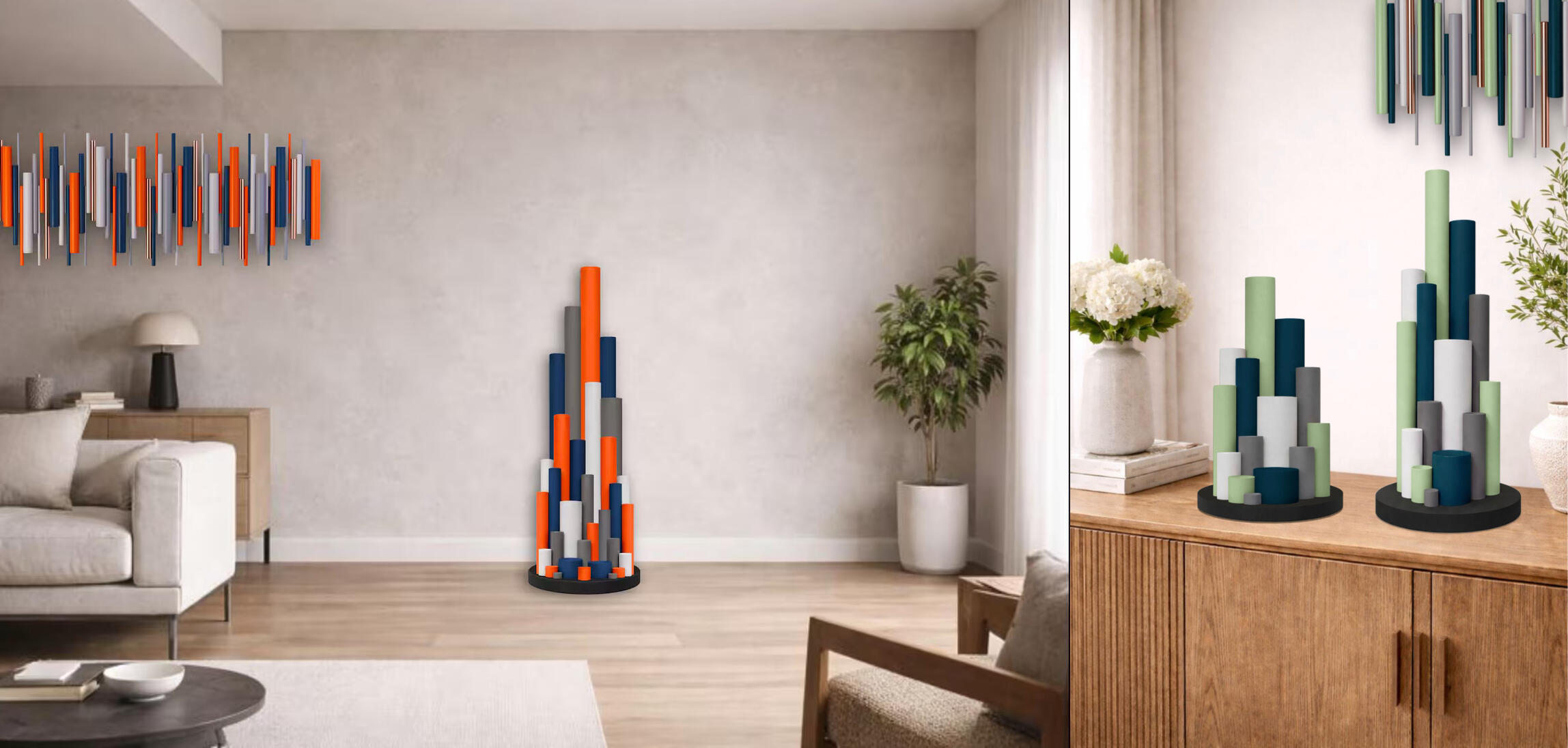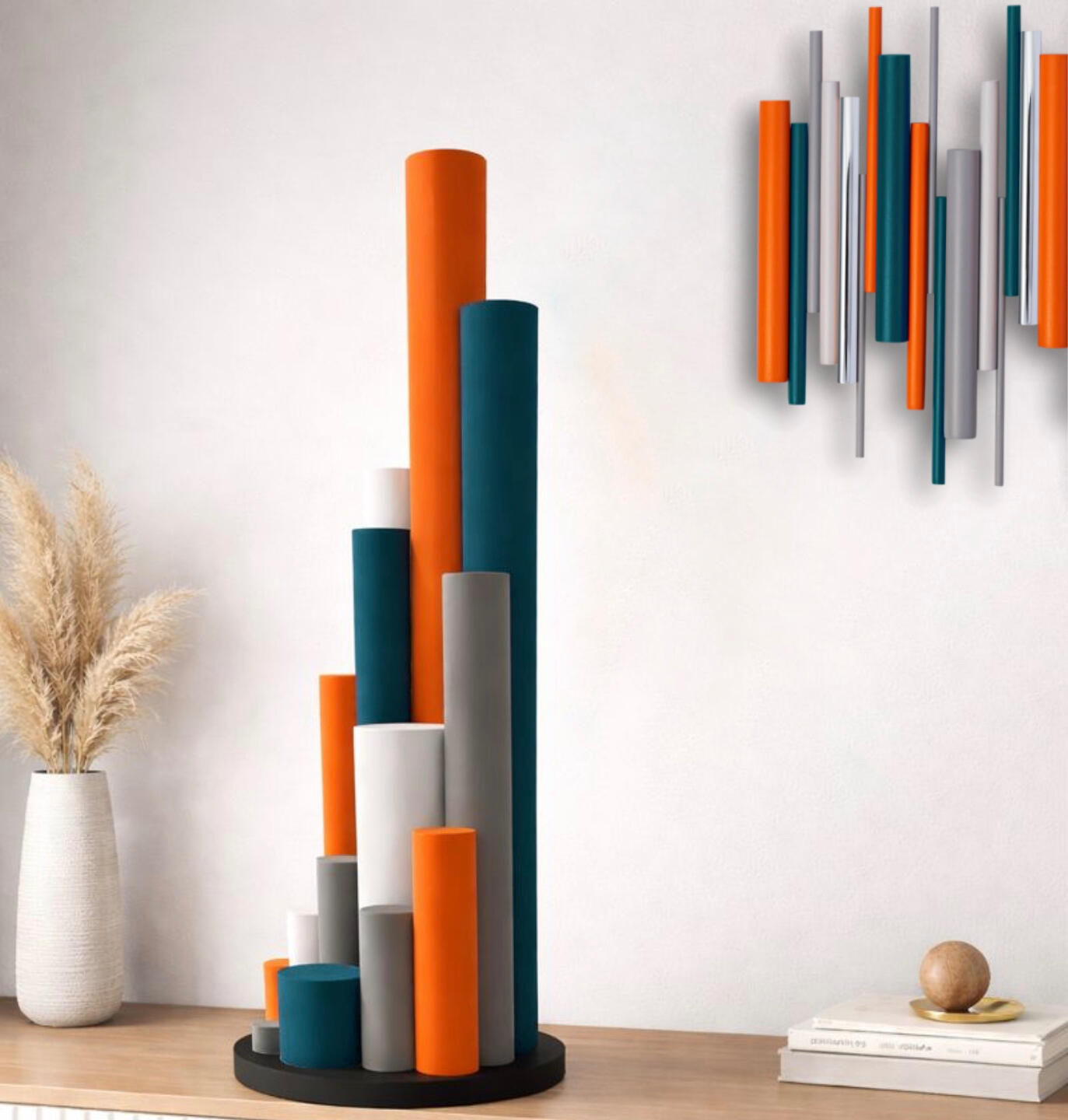 Alongside wall art, I also create coordinating floor and tabletop sculptures.These pieces are designed to complement your artwork in colour, scale, and tone — ideal for sideboards, shelves, consoles, or open floor spaces.